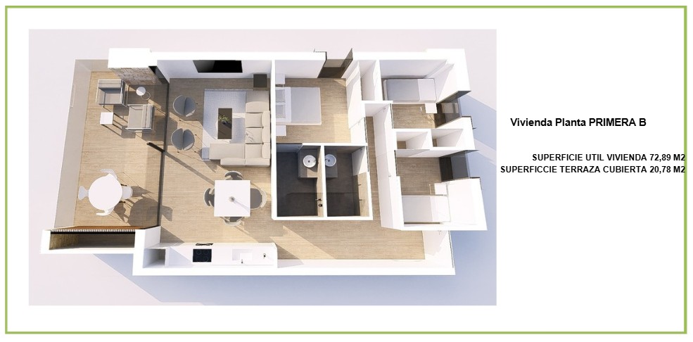 Descubre las viviendas de NUSA DUA con amplias terrazas privadas, diseñadas para disfrutar del clima mediterráneo durante todo el año.
